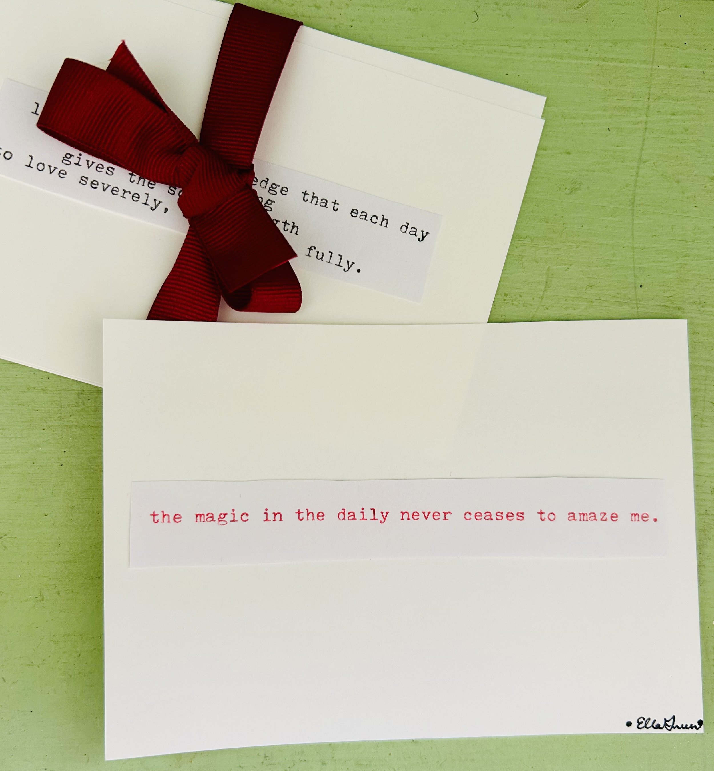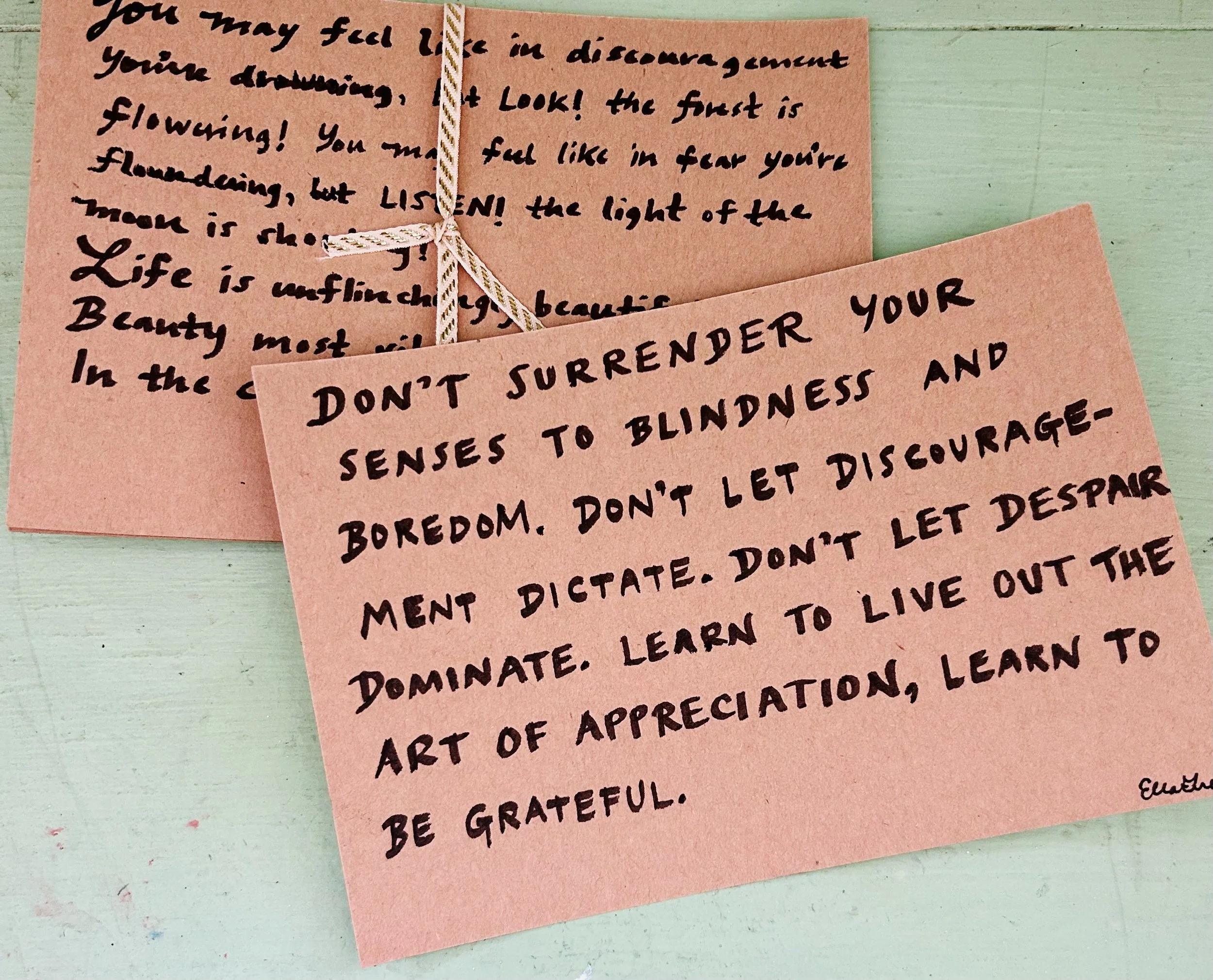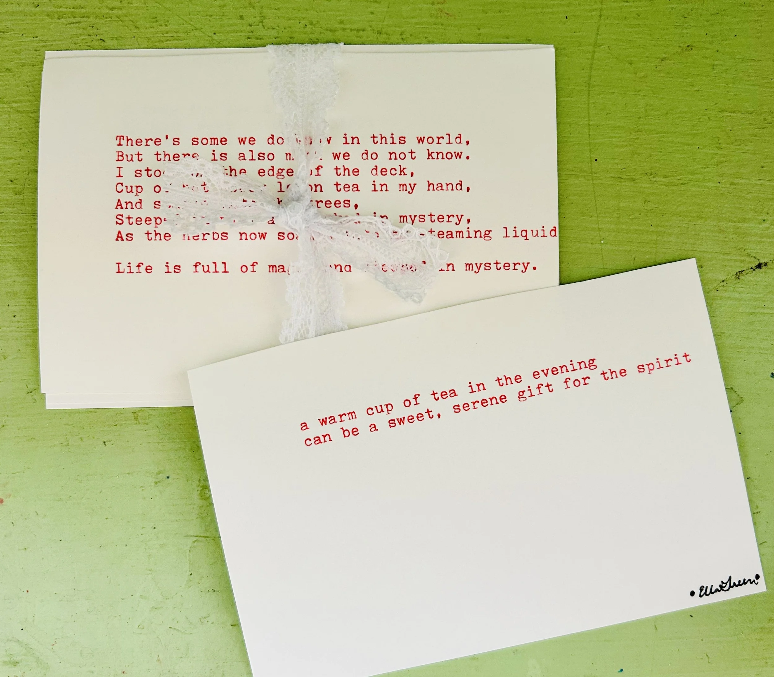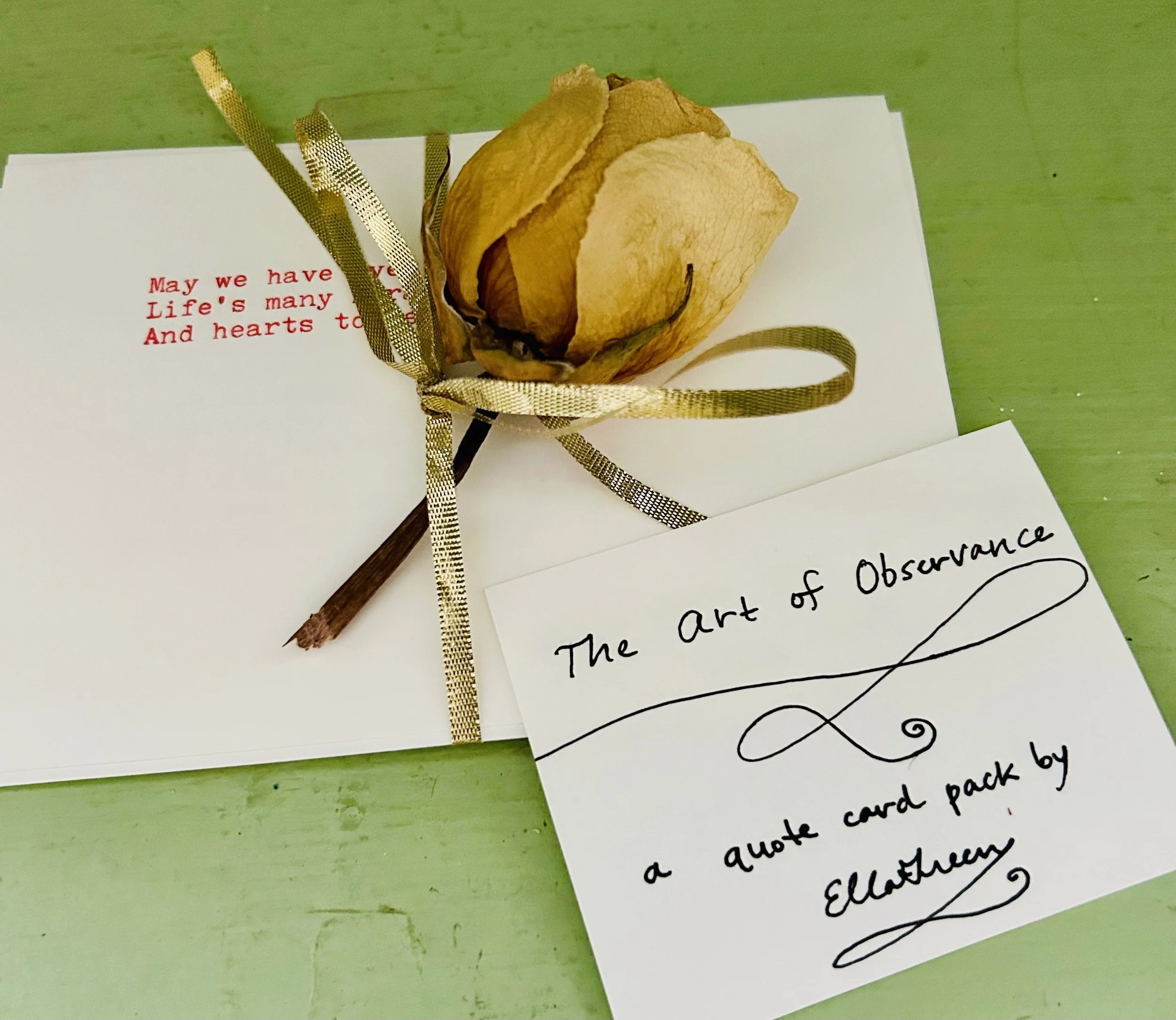 Categories: All Poetry Prints Quote Cards All | Poetry Prints | Quote Cards | "Spirit of Adventure" - A Quote Card Pack $7.00 Purchase Added! "A Cup of Tea" - A Quote Card Pack $5.00 Purchase Added! "Stop Seeking, Start Savoring" - A Poetry Print $12.00 Purchase Added! "Eyes" - A Quote Card Pack $5.00 Purchase Added! "The Blossoming of Dawn" - A Quote Card Pack $5.00 Purchase Added! "Meditative Morsels From My Mind" - A Quote Card Pack $7.00 Purchase Added! "The Gift of Existence and the Beauty of the Giver" - A Quote Card Pack $5.00 Purchase Added! "The Transformative Beauty of Bravery" - A Quote Card Pack $5.00 Purchase Added! "Words for the Arrival of Night" - A Quote Card Pack $5.00 Purchase Added! "The Beauty of Breathing" - A Quote Card Pack $7.00 Purchase Added! "The Art of Observance" - A Quote Card Pack $7.00 Purchase Added! "I Find Rest" - A Poetry Print $12.00 Purchase Added! "Today's Tears" - A Poetry Print $12.00 Purchase Added! "Now You Are Living" - A Poetry Print $12.00 Purchase Added! "Poetry is in the Daily" - A Poetry Print $12.00 Purchase Added! "We Are Living in God's Poem" - A Poetry Print $12.00 Purchase Added! "Soil and Stars" - A Poetry Print $12.00 Purchase Added! "Frosty Melody" - A Poetry Print $12.00 Purchase Added! "Slow Down" - A Poetry Print $12.00 Purchase Added! "Learn to Love it All" - A Poetry Print $12.00 Purchase Added! "Redressing" - A Poetry Print $12.00 Purchase Added! "A Walk Among the Pines" - A Poetry Print $12.00 Purchase Added! "Exploring" - A Poetry Print $12.00 Purchase Added! "Words for the Gardener" - A Quote Card Pack $7.00 Purchase Added! "Words for the Nature Lover" - A Quote Card Pack $7.00 Purchase Added! "Keep Your Eyes Open to the Extraordinary in the Ordinary" - A Quote Card Pack $5.00 Purchase Added! "Inspiration on a Rainy Day" - A Quote Card Pack $5.00 Purchase Added! "Words of Hope for a Soul in a Season of Lament" - A Quote Card Pack $5.00 Purchase Added! "Notes for the Ponderer" - A Quote Card Pack $5.00 Purchase Added! "The Beauty of Being Present" - A Quote Card Pack $5.00 Purchase Added! "Words for the Adventurer" - A Quote Card Pack $5.00 Purchase Added! "Whimsical Words: Holding onto Your Sense of Wonder" - A Quote Card Pack $5.00 Purchase Added! "Healing Words for a Hurting Heart" - A Quote Card Pack $5.00 Purchase Added! "Slow Down" - A Quote Card Pack $5.00 Purchase Added! "Hope for a Discouraged Heart" - A Quote Card Pack $5.00 Purchase Added! "The Dreamer" - A Quote Card Pack $5.00 Purchase Added! "Seeing Magic in the Mundane" - A Quote Card Pack $5.00 Purchase Added! "Intentionality" - A Quote Card Pack $5.00 Purchase Added! "Wise Notes on Living Life:" from my Typewriter - A Quote Card Pack $5.00 Purchase Added! "Life's Simple, Yet Striking Delights" - A Quote Card Pack $5.00 Purchase Added! "Lights in Life: Little and Big" - A Quote Card Pack $4.00 Purchase Added! "The Spectacular Daily:" Notes from My Typewriter - A Quote Card Pack $5.00 Purchase Added! "Notes for the Lovers" - A Quote Card Pack $7.00 Purchase Added! "Notes on Passion and Ponderings" - A Quote Card Pack $6.00 Purchase Added! "Reflections on Light" - A Quote Card Pack $5.00 Purchase Added! "Notes on Patience and Wisdom from Life" - A Quote Card Pack $5.00 Purchase Added! "The Gift of Splendid Simplicity" - A Quote Card Pack $7.00 Purchase Added!